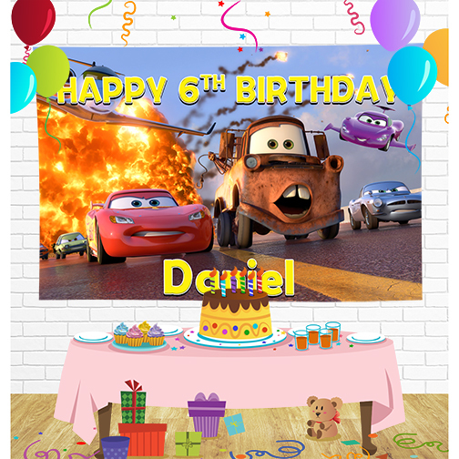 Cars Lightning McQueen Birthday Backdrop for Party Supplies Decorations