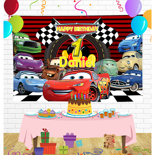 Cars Lightning McQueen Birthday Backdrop for Party Supplies Decorations