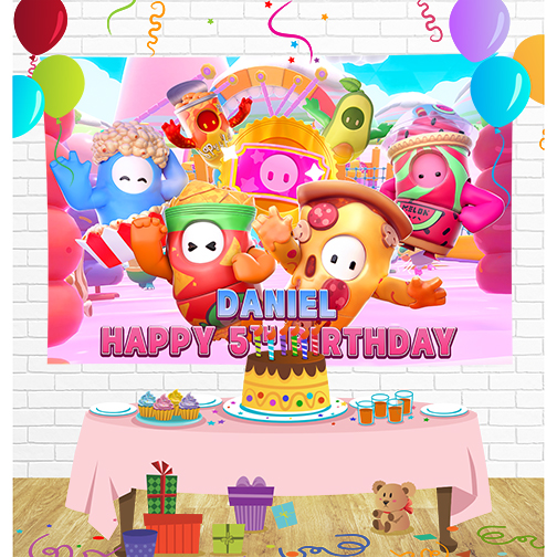 Fall Guys Birthday Backdrop for Party Supplies Decorations