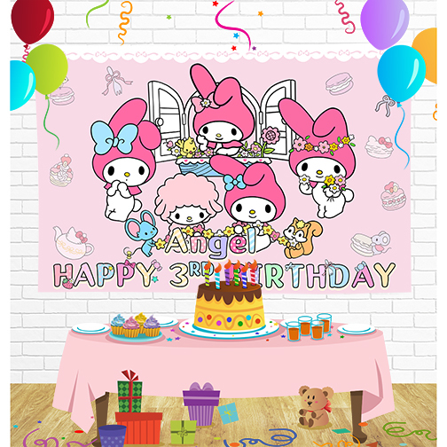 My Melody Birthday Backdrop for Party Supplies Decorations
